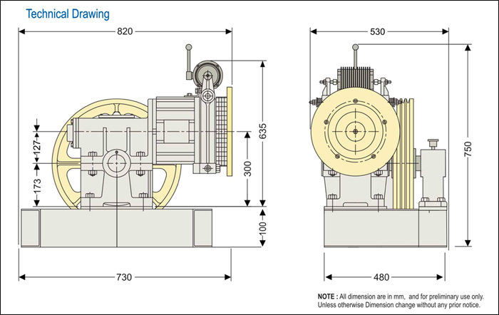 Friction Sheave Size : Dia 530 x 3 Grooves x Rope Dia. 10 or 13mm.